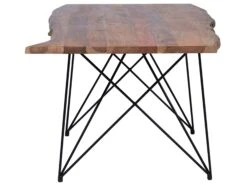 This wooden table is a bold loft-inspired centrepiece for your dining area. The table top with visible knots and grains gives it a raw look, while black steel lacquered legs in a geometric design add a touch of urban style. Set it in your dining area and pair with a bench or set of metal chairs for a complete look.
