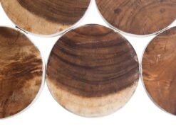 Refined style and a high-quality finish make this table a bold statement piece that is sure to add a distinctive character to any interior. Comprising metal hairpin legs with an accent top featuring multiple, circular pieces of wood, the natural, irregular pattern of wood grain brings a rustic charm. Whether styled in a living area, bedroom or hallway the table leaves a lasting impression.