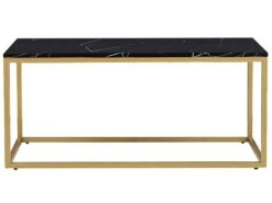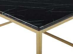 This coffee table features a sleek and modern design, combined with an elegant mid-century flair. The open frame and sophisticated marble finish blend style and functionality, offering visual rest as well as space for storage. The natural classy stone look is achieved by a black MDF table top and marble, glossy veneer, giving a luxurious feel to your room décor.