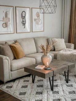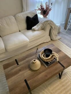 Designed to implement the industrial and clubhouse feel to any space, the coffee table blends perfectly with any room with a warehouse or loft decor. The table features a durable, thick MDF top with sturdy metal hairpin legs that give stability and strength. Finished in warm tones of brown, the table works excellently with interiors in minimalistic, vintage or urban style.