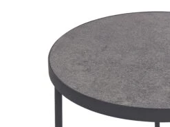 Add some character and create an urban vibe in your living space with this industrial-inspired coffee table. A round table top in a concrete-like finish provides a perfect place to display candles, plants and photographs, or serve hot beverages to your guests. The metal legs in matt black give stable support but do not detract from the overall style of the piece. The table is multifunctional and may also serve as a bedside table or hallway accent piece.
