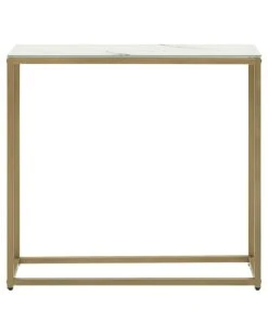Sleek, modern design combined with a mid-century appeal, it is all featured in this rectangular console table. Bringing functionality and elegance to your home, the piece boasts an open frame base that adds visual space but can as well offer a place for storage. The white table top with marble effect is constructed from tempered glass and it brings the luxurious feel to room dรฉcor.