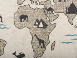 The taupe carpet with a continent pattern is not only a unique living accessory but can also serve as a learning aid for young explorers of the world. The cotton carpet is an excellent choice for children’s rooms as well as for other rooms that require a distinctive and playful furnishing element.