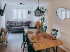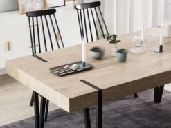 Designed to implement the industrial and clubhouse feel to any space, the dining table blends perfectly with any room with a warehouse or loft decor. The table features a durable, thick MDF top with sturdy metal hairpin legs that give stability and strength. Finished in warm tones of light wood, the table works excellently with interiors in minimalist, vintage or urban style.