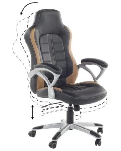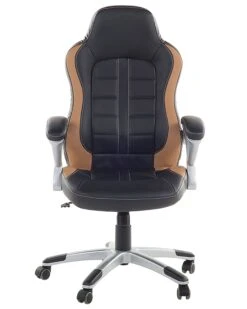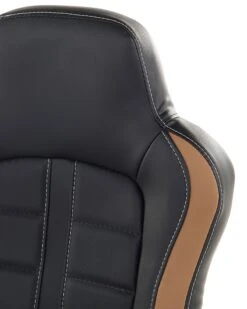 Carefully selected pieces of black and golden brown synthetic leather create a truly individual look for this computer chair. This seat was designed for complete comfort with the extra-wide backrest and soft padding providing ergonomic support to your back and torso. Working at a desk just got a little easier thanks to this computer chair.