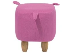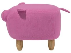 This animal shaped stool is a great addition to a modern home setting. The whimsical pig design makes it a perfect fit for nurseries and playrooms as it can easily become an irreplaceable and integral part of children activities and games. Its durable and pleasant to the touch upholstery is made of a polyester in a vibrant pink colour. The construction is complemented by thick wooden legs in a light wood tone.