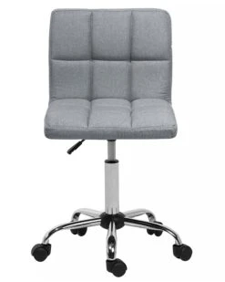 Introduce a chic edge to your home office with this elegant chair. Chrome-coated base, designed with a comfy seat and stitched fabric upholstery, creates a classic grey desk chair with a modern twist. With the 360° swivel and height- adjustment, you can sit comfortably at the desk for hours without straining your back.