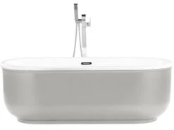 Designed for the ultimate leisure and relaxation, this oval tub features charmingly rounded edges. The delicate silhouette makes an eye-catching centrepiece, enriching the look of any glam bathroom. Featuring reinforced acrylic in a stylish silver finish, it is characterised by high durability, shock resistance and easy cleaning.