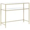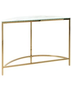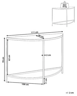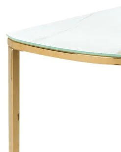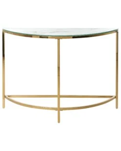 Refresh the look of your living room or hallway and add a touch of glamour with this stylish console table. The sturdy, gloss stainless steel construction ensures stability and durability for years to come. A sleek, half-round top with a matt marble-effect 3D print adds charm to the table and brings a modern touch to your interior.