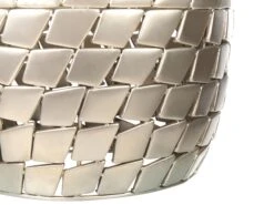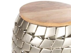 Suitable for any modern space, this side table would be a perfect complementary piece for all those who appreciate the unique charm of a handmade product. Beautiful top made from mango wood contrast nicely with a geometric pattern metallic base. The unusual shape and materials combination makes it a statement piece of any interior.