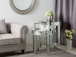 Ultra-trendy and elegant, this set of 2 side tables introduces glam to any living area. Boasting mirrored glass panelling it is perfect for displaying personal touches such as photographs or works of art. Set it by the sofa or in the hallway to enlarge and liven up the space.