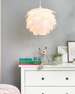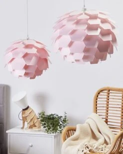 The minimalist, but unique and standing-out design of this ambient pendant lamp takes inspiration from Scandinavian interiors. Its pink, multifaceted structure casts soft illumination from different angles. The fixture contemporary and stylish silhouette is a great match to any modern or contemporary home decor.