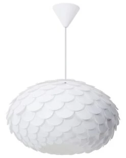 This ceiling lamp is constructed from plastic scales put in layers, creating an oval shape. The light that shines through the structure is unbelievably romantic and delicate. The lamp is very decorative and fills your interior with warm, ambient light. It is an absolute must-have and will surely find a good place in your home.