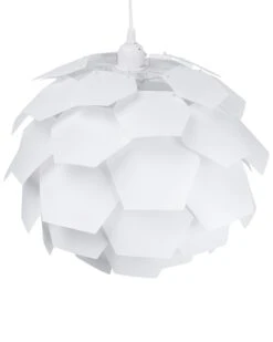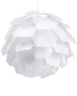 The minimalistic, but unique and standing-out design of this pendant lamp takes inspiration from Scandinavian interiors. Its white, multifaceted structure casts soft ambient illumination from different angles. The fixture contemporary and stylish silhouette is a great match to any modern or contemporary home decor.