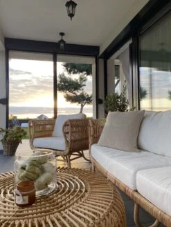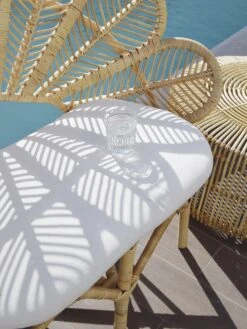 A stylish coffee table isn’t an addition reserved only for the indoors. This piece has been designed with outdoor use in mind, and has a fitting rustic look, thanks to being made of lightweight rattan. The entire construction is supported by a metal frame, which grants sure stability. It fits boho environments best.