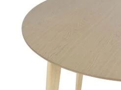 This table in light wood colour will be the perfect addition to a Scandinavian-style dining room or kitchen. The round tabletop made of high-quality MDF comes with sturdy rubberwood legs. Match the table with wooden or upholstered chairs in a light-coloured fabric to give your interior a harmonious look.