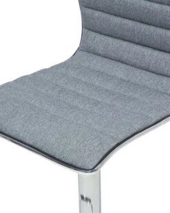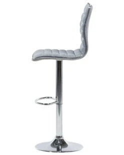 This bar stool set is comfortable and modern, complementing any contemporary interior design. The thickly padded seats are upholstered in grey fabric with horizontal quilting. A dark colour helps elevate your space and create a feeling of calm. Constructed from high-quality, chrome plated metal, they come with a footrest and a wide, anti-slip base. The chair swivels 360 degrees and is height adjustable too.