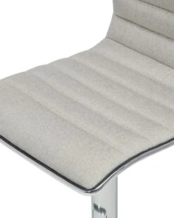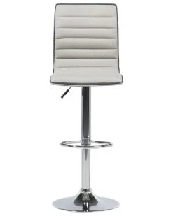 This bar stool set is comfortable and modern, complementing any contemporary interior design. The thickly padded seats are upholstered in beige faux leather with horizontal quilting. A light colour helps brighten your space and create a feeling of calm. Constructed from high-quality, chrome plated metal, they come with a footrest and a wide, anti-slip base. The chair swivels 360 degrees and is height adjustable too.