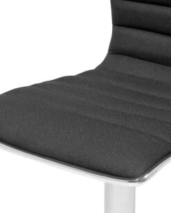 This bar stool set is comfortable and modern, complementing any contemporary interior design. The thickly padded seats are upholstered in black faux leather with horizontal quilting. A dark colour helps elevate your space and create a feeling of calm. Constructed from high-quality, chrome plated metal, they come with a footrest and a wide, anti-slip base. The chair swivels 360 degrees and is height adjustable too.
