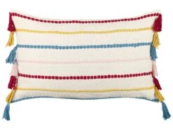 Retro accessories can easily enliven any area without disrupting the interior style, and these cushions are the case. They feature multicolour horizontal lines as well as decorative tassels that will bring some energy to the room. Moreover, they are thickly padded and made of cotton thanks to which the cushions can serve well during relax.