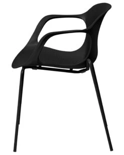 Update the look of your dining area with the set of two beautifully curved chairs. The shell form made of white synthetic material provides great support for the body. Designed with comfortable armrests and slim legs featuring powder-coated metal. The chair is a perfect feature for a kitchen, office or a conference room in an industrial or modern style.