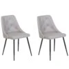 A comfortable set of two elegant dining chairs suits classic and modern dining areas. Their armless pleasantly shaped form saves space and offers a high-comfort sitting. Quilted seats are upholstered with brown faux leather and complemented by slim metal legs treated with a powder coat.