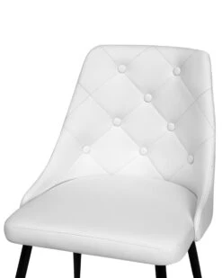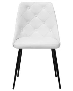 Add a touch of glam to any modern dining area with these accent dining chairs. A classic design with an upscale look, the chairs feature faux leather upholstery in classic white. A diamond-padded backrest embellished with decorative buttons and a luxuriously soft seat create a comfortable piece that will satisfy many. The chair is complemented by slender black legs made from metal which only add to the overall appeal of the piece.
