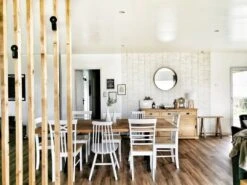 This dining chair set offers a minimalist look that fits nicely within any modern space and will never go out of style. It features a seat with visible natural wood pattern and a high ladder back. Thanks to its clean-lined design it will look good matched with a wooden table, in Scandinavian or rustic style interiors. Solid rubber wood construction features a lacquer finish for a smooth surface and a slightly glossy look.