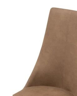 This set of two chairs adds a modern touch to any kitchen or dining room. The faux leather golden brown upholstery, neat seams and long, sleek legs make the set elegant in its simplicity. Carefully crafted black details greatly underline the colour of the chairs. Thanks to the high, slightly rounded backrests and soft padded seats, the chairs provide perfect sitting comfort.