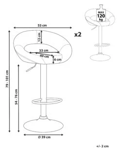 This bar stool set combines comfort with contemporary design. Each chair features a high-quality faux leather seat, densely padded with foam for absolute comfort. A single silver iron leg is robust while also lending a touch of elegance. The chair swivels 360° and is easily adjusted for height due to its gas-lift mechanism. Ideal for a kitchen island or bar counter, the chair blends effortlessly into modern interiors.