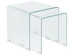 Set of 2 minimalist side tables, a perfect complement to any modern, contemporary or Scandinavian-inspired home decor. The piece is crafted from high-quality tempered glass and it features smooth finish as well as stylish rounded edges. The table is totally transparent, making it a voguish element in your living room.
