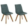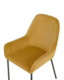 Complete your dining table with this set of two chairs and infuse your interior with retro vibes. The pieces are upholstered in a corduroy fabric, which is both soft to the touch and durable. With its chic striped texture and black slender legs made of powder coated metal, these accent chairs fit modern trends and enrich the look of any dining room.