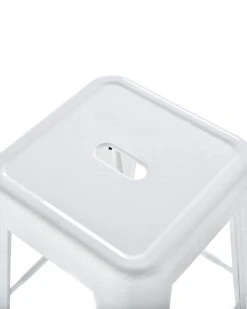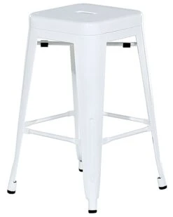 Comfortable, practical and on-trend – this set of 2 white bar stools is a perfect addition to a dining room in industrial and modern decor. The loft-inspired design is combined with functionality, such as stackable feature that makes them easy to pair with any kind of kitchen set-up, and can also be used in the bathroom, office or garage. Stools are made of powder-coated metal with leg pads to protect your floor and provide a non-slip stand. The cross beams on all four sides can also serve as comfortable footrests.
