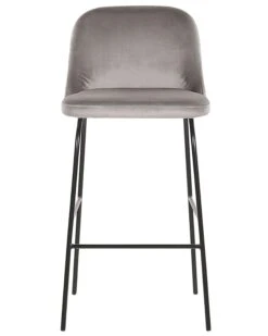 Add an extra seating space to your dining area with this set of two industrial-inspired bar chairs. Thickly padded and upholstered in soft to the touch velvet it’s both robust and comfortable, and the metal base with footrest can easily withstand daily usage. With its minimalist design and streamlined shape, this set fits into any modern dining or living room.