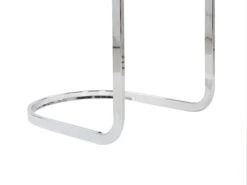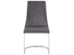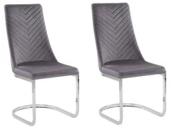 The set of high-back chairs complement any dining room or living room and offer the ultimate comfort and a sophisticated design. A shiny chromed frame matched with a soft velvet upholstery of these chairs give any room incredibly modern and sleek appearance. The grey colour goes well with a white or light wood dining table – such a combination will generate an upscale and cosy interior.