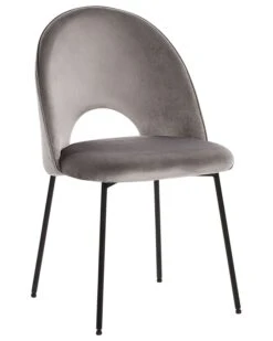 Introduce a retro vibe to your interior with this set of stylish chairs. Thickly padded and upholstered in pleasant to touch velvet, they feature four thick black metal legs that add character to any dining set set-up. Combined with a streamlined backrest with a decorative gap, it underlines both modern and traditional arrangements.