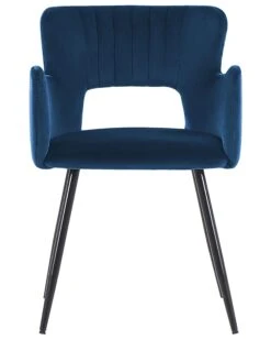 These chairs are all about modern design, they present a retro-inspired silhouette mixed with functionality, high-quality materials and comfort. A padded seat comes with armrests and a backrest with eye-catching cut-out detail. The smooth velvet upholstery gives depth and sheen to the colour, complementing slanted, powder-coated black legs. Vertical tufting on the inner back lends chairs an elegant touch. With that universal design, this seat would look fantastic by the dining table in a home office or bedroom.