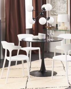 A comfortable seating is what every indoor and outdoor area needs to become a welcoming place for dining and spending time with family. This set of chairs will serve this purpose perfectly. Made of high quality synthetic materials, they feature round backrest and wide seating part for proper comfort. The contemporary yet unique design makes these chairs an excellent piece of furniture for modern and minimalistic interiors. Thanks to the materials they were manufactured from, the chairs can be used either in home or garden.