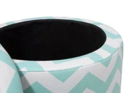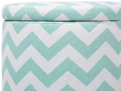 This round stool is a perfect addition to any living space in a modern or retro interior. Use it as an extra seat or a place to rest your feet. A functional storage space under the seat is perfect for hiding all your necessities. A wear-resistant cotton upholstery features a mint green and white chevron pattern that will suit every home décor.