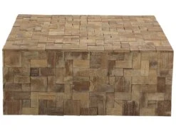 A unique, geometric coffee table that fits perfectly into any modern or industrial interior. Featuring individual teakwood pieces that are arranged together into a cubical form for a stunning effect. The natural warm brown colour of the wood ensures that the table goes well with every decor, from eclectic and rustic, to modern. Original and solid, it is a perfect piece for any living room.
