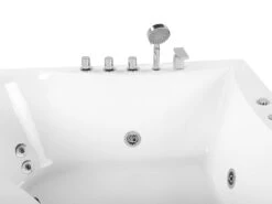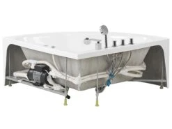 A simple corner bathtub that transforms any bathroom into a private home SPA. With 4 small and 4 big jets, it offers a whole-body massage that releases tensions and relaxes both muscles and mind. Finished in white and paired with silver taps, it matches most modern bathrooms.